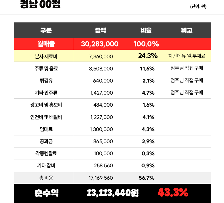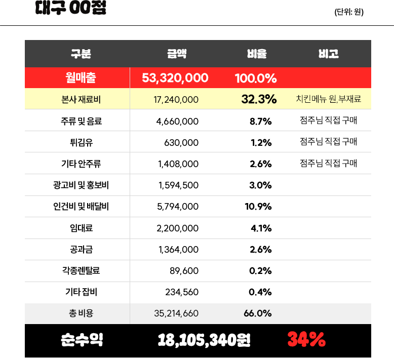 홀 영업과 포장 판매(take-out)만으로 충분한 매출과 이익창출