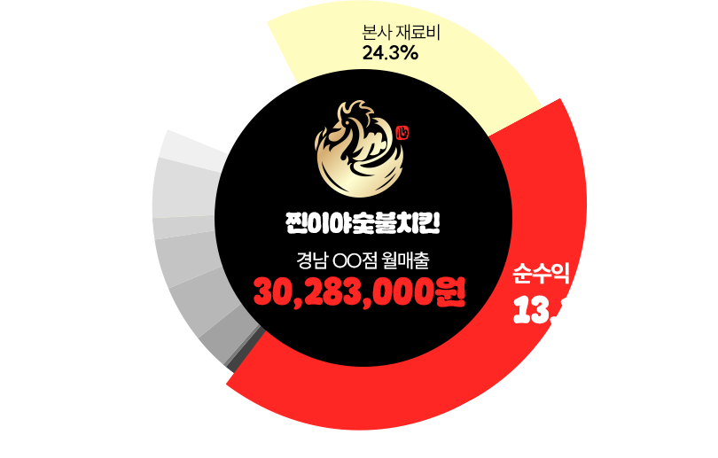 찐이야 숯불치킨은 본사의 반사이익만 챙기는 매출을 지양합니다.