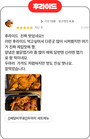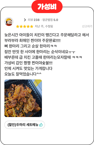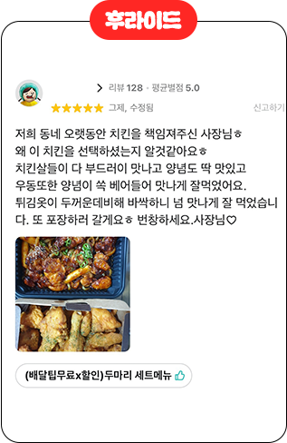 방문포장 하시면 할인되는 우리동네 가성비 1등 치킨!