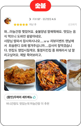 꼼꼼히 따져보고 찐이야숯불치킨을 선택한 점주님들이 입을 모아 외치는 말입니다.